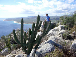 Left after 2 nights at Bahia saint maira and had a good sail all the way to Mag bay. Anchored off the small village here about 5 miles up from bay entrance. Very poor village here with many of the house without roofs which they lost in a hurrican this year. Hiked up a local hill here with Jack from the boat water dog. Lots of cactus to scramble around on the way up the hill.